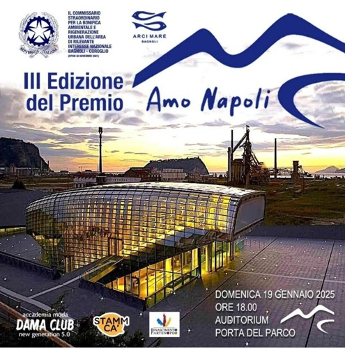 Domenica 19 gennaio (con inizio alle ore 18), presso l'Auditorium La Porta del Parco di Bagnoli, si terrà la cerimonia di consegna della terza edizione del Premio "Amo Napoli". Ideato e promosso dalle associazioni Dama Club e Stamm Ca', in collaborazione con Rinascimento Partenopeo, l'evento di quest'anno vede anche il coinvolgimento dell'associazione Arci Mare, costituita nel 2020 da ex operai dell’Italsider e appassionati del mare, che ha fortemente voluto che questa manifestazione si svolgesse nel cuore di Bagnoli.