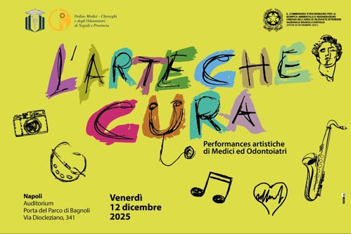 🎨 L’Arte che Cura è un’iniziativa promossa dall’Ordine dei Medici-Chirurghi e degli Odontoiatri di Napoli e Provincia, con il patrocinio della Struttura di supporto del Commissario Straordinario per la bonifica ambientale e la rigenerazione urbana del SIN Bagnoli-Coroglio, per valorizzare la dimensione umana, creativa e relazionale della professione medica.