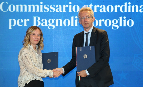 Il Presidente del Consiglio Giorgia Meloni, sottoscrive il Protocollo d'intesa con il Commissario straordinario Gaetano Manfredi, per la realizzazione degli interventi inseriti nel programma di risanamento ambientale e rigenerazione urbana.