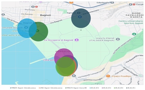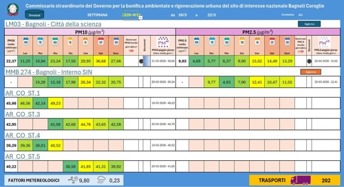 Il sistema integrato di monitoraggio ambientale, costituito dalle centraline della rete ARPAC (Città della Scienza e Pontile) e da quelle installate nel quadro del Piano di Monitoraggio Ambientale (PMA) gestito da Invitalia, nel periodo considerato ha rilevato che: